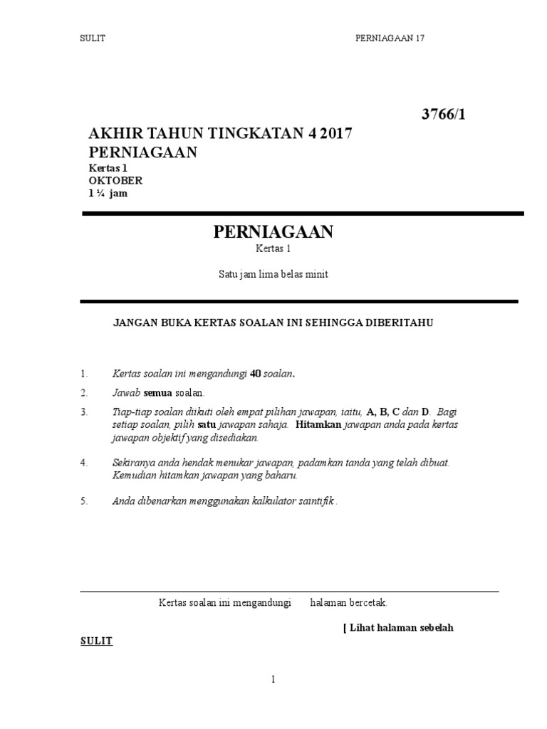 Perniagaan Akhir Ting 4 2017 K1 Pdf
