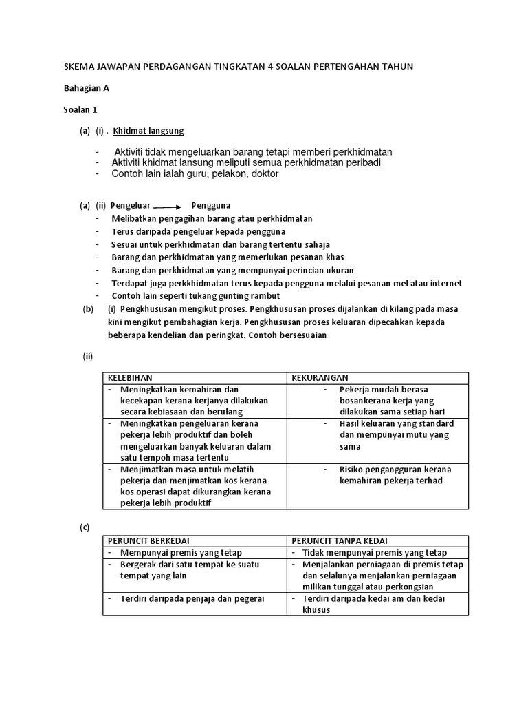 Skema Jawapan Perdagangan Tingkatan 4 Soalan Pertengahan Tahun